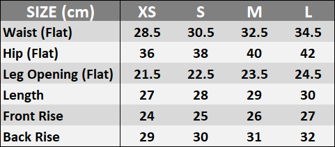 SIZE GUIDE - IKIGAI 生きがい GYM SHORTS